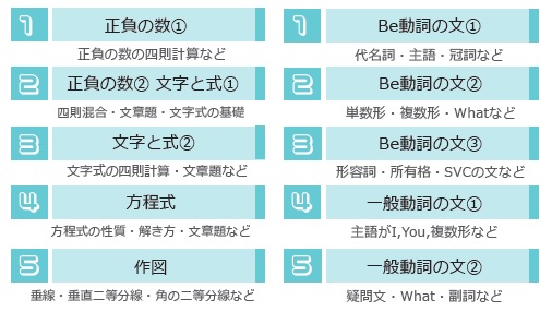 本講座では、進学先の中学校で実際に使用する教科書や進度に沿った内容を事前に学習することで、1学期から成績上位を目指すことを目標にしています。