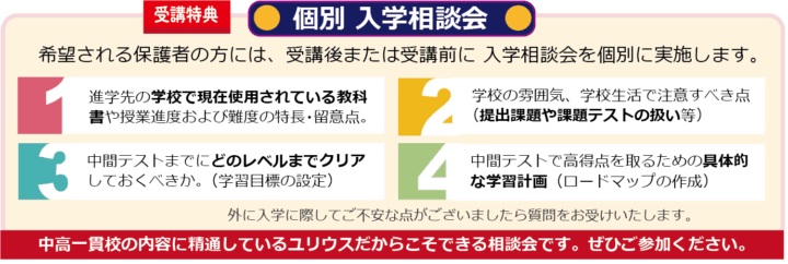 ユリウスは中高一貫校専門塾。お通いの学校の教科書・学習内容に沿った指導が可能です。