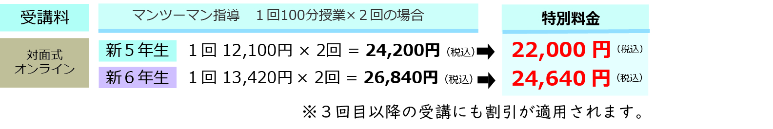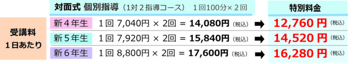塾での勉強時間を応援するため、特別料金を設定しました。