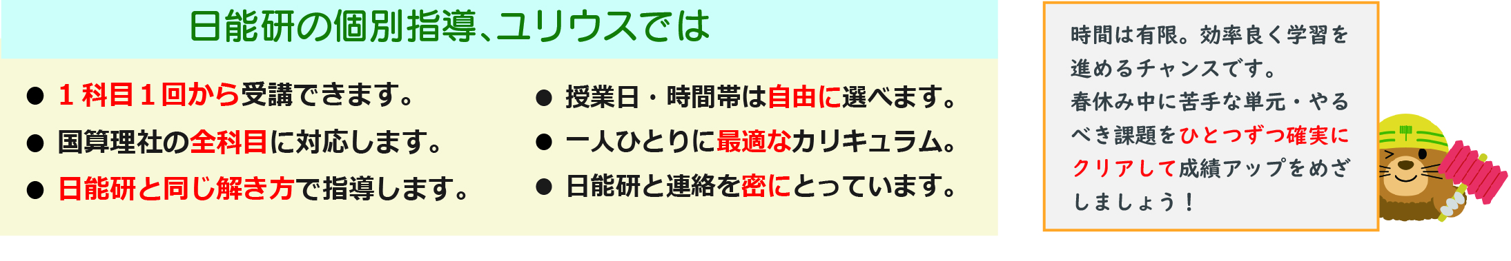 日能研の授業+ユリウスの個別指導=成績アップ!