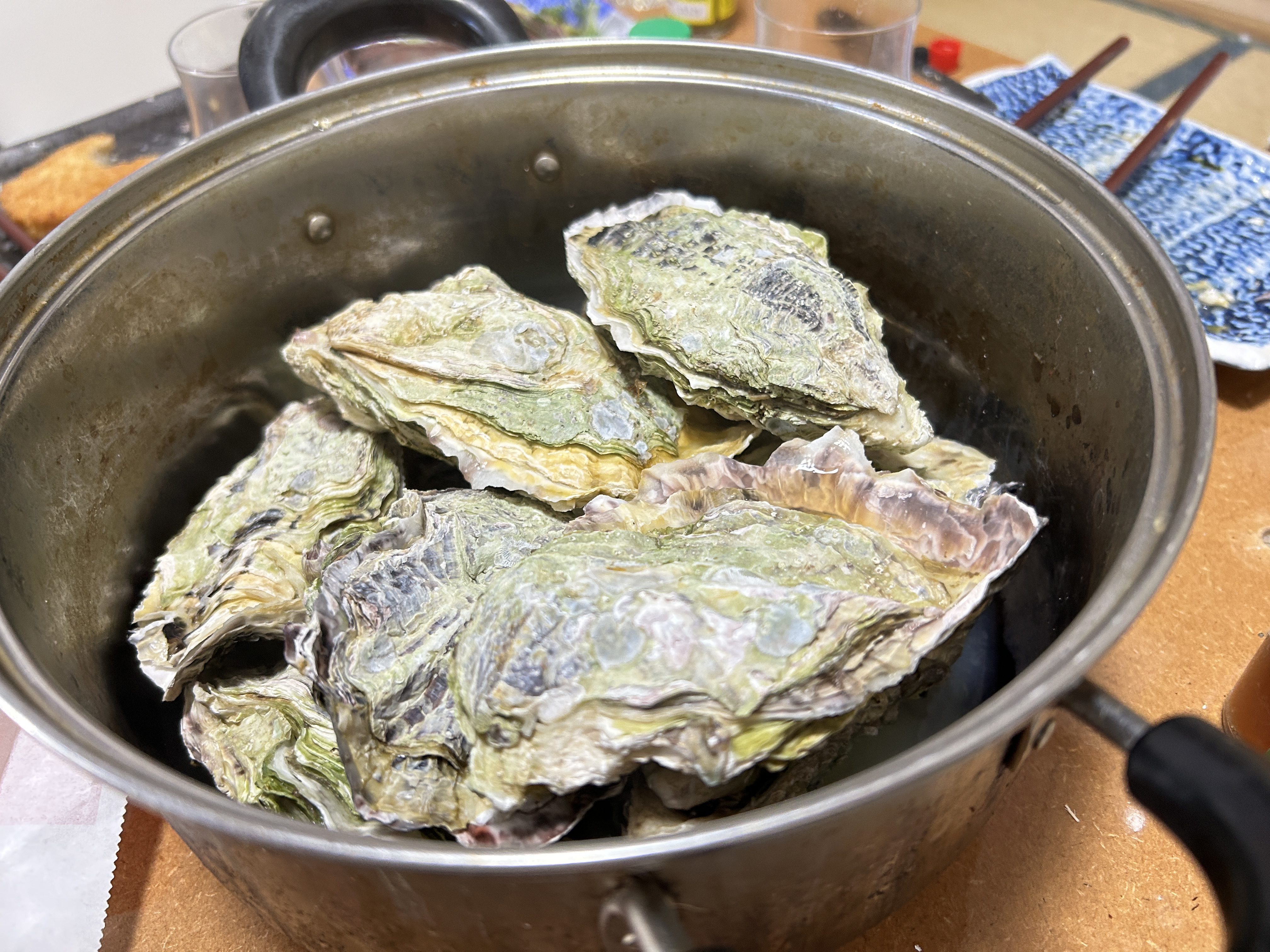家庭で焼き牡蠣は難しいかもしれませんが、蒸し焼きやガンガン焼きならば手軽に楽します。